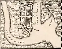 ![]() Detalle de un mapa de 1733, en el que se muestra la costa de América del Norte entre Charles Town y San Agustín. | ||||