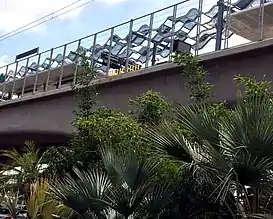 La estación cuenta con 1 plataforma central aérea y 2 vías.