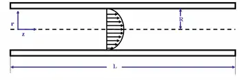 Primero tratamos el flujo, que a través de un canal de sección transversal circular fluye con un flujo parabólico: