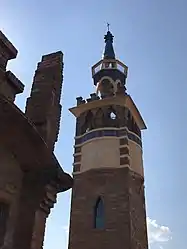 El sistema de construcción utilizado fue el ladrillo visto, siguiendo el tradicional sistema catalán de construcción. Las formas conseguidas con este material, en concreto el remate de las fachadas, los elementos de hierro forjado y un uso limitado de piedra y de cerámica (en las torres y en un mosaico con las iniciales del propietario) embellecen el conjunto.