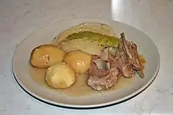 El fårikål (literalmente ‘cordero en repollo’) es un plato tradicional noruego consistente en trozos de cordero con hueso, repollo, pimienta negra en grano y un poco de harina de trigo, cocido durante varias horas es una cazuela, y se sirve tradicionalmente con patatas cocidas con piel. El plato se prepara tradicionalmente a principios del otoño.