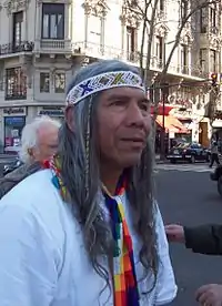 ![]() Félix Díaz en el acampe Qopiwini en ciudad de Buenos Aires, agosto de 2015. | ||