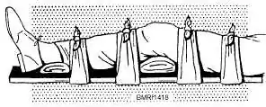 - Férula de Linston: una férula recta, a menudo de madera con una almohadilla para la fractura del fémur. Se adapta a un lado del cuerpo y al miembro inferior.