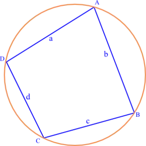 La fórmula de Brahmagupta, en su expresión más simple, permite hallar el área de un cuadrilátero cuyos lados tienen longitudes a, b, c, d: