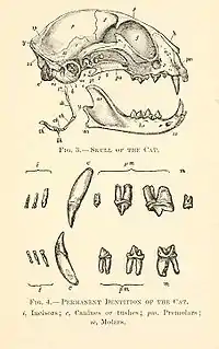 La dentición permanente presenta una cantidad total de piezas que varía entre 36 y 42, según haya caninos o no, y según la cantidad de premolares.[29]