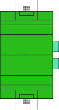 Desde la base de los dos postes exteriores se traza una línea perpendicular a la línea de los 13m, la cual se une con la mencionada línea. A 3,8m del exterior de cada poste de la meta se traza una línea perpendicular a la línea de los 13m, la cual se adentra 4,5 metros en el terreno. Los extremos de estas líneas son unidos por otra, que totaliza 14m. El área de menor tamaño recibe el nombre de área o rectángulo pequeño, mientras que el mayor recibe el nombre de área o rectángulo grande.