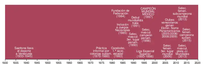 Sin embargo, el deporte se ha mantenido activo dentro del territorio venezolano. Ha estado presente en los torneos internacionales más importantes, tanto de clubes como de selecciones (salvo contadas excepciones), obteniendo algunos resultados de gran relevancia, como el subtítulo en el mundial de 2013 y el título en el sudamericano de 2015 logrados por la selección femenina, y la medalla de plata en los Juegos Mundiales de 2013 y el subcampeonato sudamericano de 2014 por parte de la selección masculina.[16]