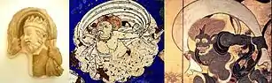 También el dios griego del viento Boreas se convirtió en el dios Wardo en el arte greco-budista, a continuación, una deidad del viento en China (frescos de lacuenca del Tarim), y finalmente el dios del viento japonés Fuji