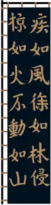 Los kanjis hacen alusión al capítulo siete de El arte de la guerra de Sun Tzu: