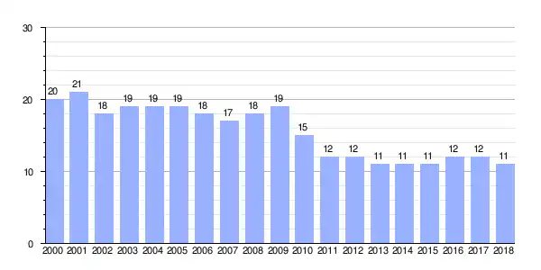 Gráfica de evolución demográfica de Faílde entre 2000 y 2018 |