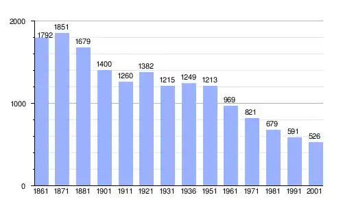 Gráfica de evolución demográfica de Fabbriche di Vallico entre 1861 y 2001 |
