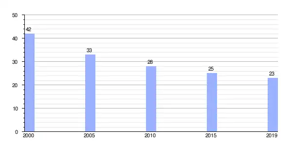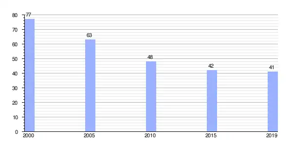 Gráfica de evolución demográfica de Facha (aldea) entre 2000 y 2019 |