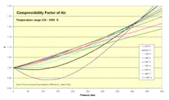 El aire normal se comprende en números crudos de alrededor de 80 por ciento de nitrógeno N2 y 20 por ciento de oxígeno O2. Ambas moléculas son pequeñas y no polares (y por tanto, no asociantes). Se puede por tanto esperar que el comportamiento del aire dentro de rangos amplios de temperatura y presión pueda ser aproximado con razonable precisión como el de un gas ideal. Los valores experimentales para el factor de compresibilidad confirman esto.