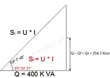 Supongamos una instalación de tipo inductivo cuyas potencias P, Q y S forma el triángulo de la figura 1. Si se desea mejora el cosφ a otro mejor cosφ', sin variar la potencia activa P, se deberán conectar un banco de condensadores en paralelo a la entrada de la instalación para generar una potencia reactiva Qc de signo contrario al de Q, para así obtener una potencia reactiva final Qf. Analíticamente: