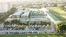 Vista del estacionamiento y las aulas de la Sede Campus.