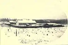 El asentamiento incipiente de Fairbanks tal como apareció en 1903. Los edificios mostrados son probablemente por los del puesto de comercio de E. T. Barnette.