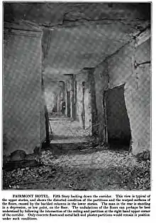 - El hotel entre las ruinas de la ciudad tras el incendio de 1906