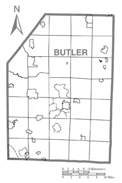 ![]() Ubicación en el condado de Butler ![]() Ubicación del condado en Pensilvania ![]() Ubicación de Pensilvania en EE. UU. | ||