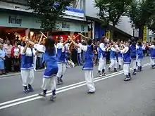 Baile de bastones en Granollers: el faldellín forma parte de la indumentaria tradicional de este baile.[1]