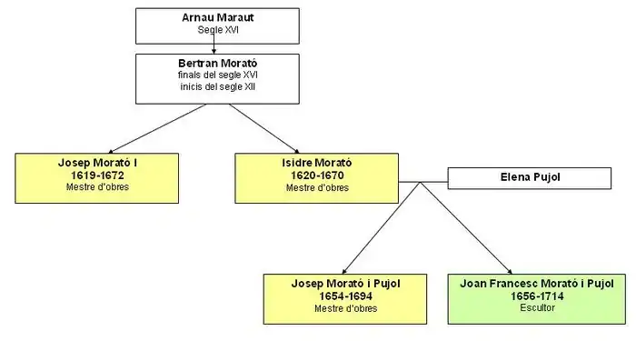 La dinastía arranca del siglo XVI con Arnau Maraut, francés procedente del Bearn que se establece en Vich sin que se conozcan las causas que lo llevaron a cruzar los Pirineos ni su dedicación. Únicamente se conoce que tuvo un hijo, Bertran, que aparece documentado como campesino y arriero y con el apellido ya catalanizado como Morató.