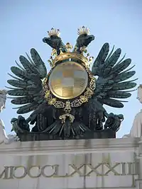 Blasonamiento | Águila imperial sobre damero en rojo de una bandera. | |