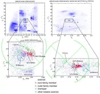 - according to the HCM analysis by V. Zappalà, Ph. Bendjoya, A. Cellino, P. Farinella and C. Froeschlé, Asteroid Families: Search of a 12,487-Asteroid Sample Using Two Different Clustering Techniques, Icarus, Volume 116, Issue 2 (August 1995), pages 291-314