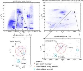 - V. Zappalà, Ph. Bendjoya, A. Cellino, P. Farinella and C. Froeschlé, Asteroid Families: Search of a 12,487-Asteroid Sample Using Two Different Clustering Techniques, Icarus, Volume 116, Issue 2 (August 1995), pages 291-314