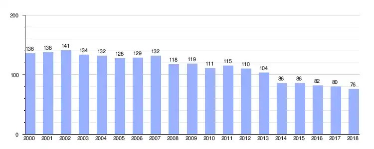 Gráfica de evolución demográfica de Farasdués entre 2000 y 2018 |