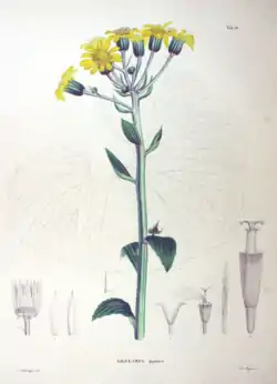 ![]() Farfugium japonicum en Philipp Franz von Siebold & Joseph Gerhard Zuccarini,Flora Japonica, Sectio Prima, 1870 | ||