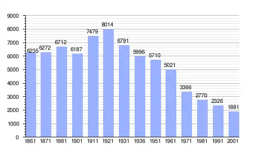 Gráfica de evolución demográfica de Farini entre 1861 y 2001 |