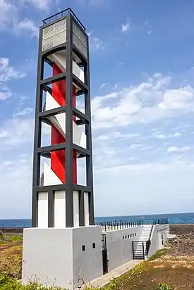 El faro se terminó de construir en 1995 y entró en servicio en 1996.[2] Está compuesto por una torre cuadrangular negra y otra interior cilíndrica a bandas rojas y blancas.