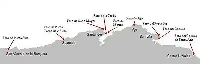 La costa de Cantabria cuenta con 9 faros a lo largo de sus 174 kilómetros, entre la desembocadura del río Deva (ría de Tina Mayor) por el Oeste en el límite con Asturias y la punta del Covarón, cerca de la ensenada de Ontón, por el Este en el límite con Vizcaya.
