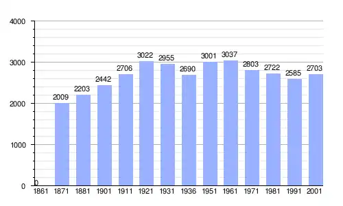 Gráfica de evolución demográfica de Farra d'Alpago entre 1861 y 2001 |