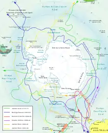 Los primeros pasos significativos en el avance hacia el sur fueron el descubrimiento de las tierras al sur del cabo de Hornos en 1619, el cruce del círculo polar antártico por James Cook en 1773 y el primer avistamiento confirmado del territorio de la Antártida en 1820.
