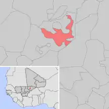 Se encuentra ubicada en el centro del país y de la región de Mopti, cerca de la confluencia de los ríos Níger y Bani.
