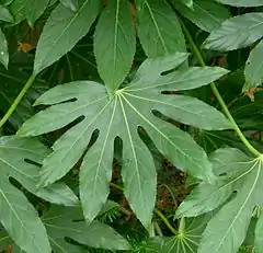 La aralia (Fatsia japonica) es una especie arbustiva del género botánico Fatsia en la familia Araliaceae.