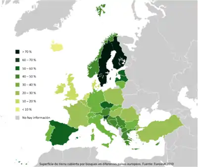 Europa estaba cubierta por bosques en un porcentaje del ochenta al noventa por ciento. El bosque se extendía desde el mar Mediterráneo hasta el océano Ártico. Aunque más de la mitad de los bosques originales de Europa desaparecieron a lo largo de los siglos de deforestación, Europa todavía tiene más de una cuarta parte de su superficie terrestre como bosques, como los bosques boreales de Escandinavia y Rusia, bosques pluviales mixtos del Cáucaso y de alcornoques en el oeste Mediterráneo. En la Europa templada, predominan los bosques mixtos con árboles de hoja ancha y coníferas. La tala del hábitat forestal preagrícola ha causado grandes perturbaciones a los ecosistemas animales originales, y solo algunos rincones de la Europa continental no han sido pastoreados por el ganado en algún momento.