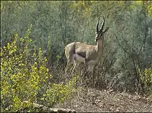 La gacela, sin embargo, es el mamífero más emblemático del país, con poblaciones desde Galilea y los altos del Golán hasta el desierto del Néguev, el desiero de Judea, los montes de Jerusalén y el mar Muerto. En total comprenden tres especies de gacela y varias subespecies, algunas compartidas con Palestina y Jordania.