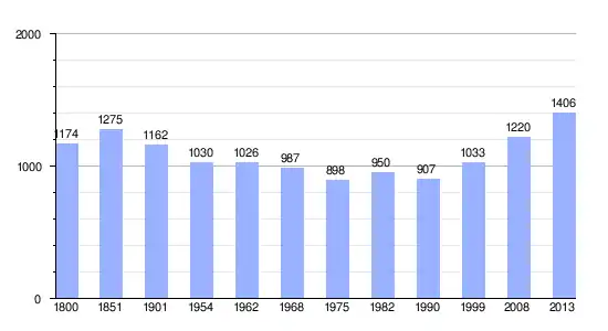 Los datos demográficos contemplados en este gráfico de la comuna de Faye-d'Anjou[4] se han cogido de 1800 a 1999 de la página francesa EHESS/Cassini, y los demás datos de la página del INSEE.[5]