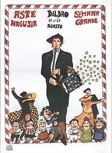“Las Fiestas de Bilbao. Durante años y tradicionalmente se ha asegurado que carecen de la autenticidad de una participación popular. Que las Fiestas de Bilbao, en definitiva, no son populares. No trascienden al gran público de Bilbao porque el pueblo no participa en ellas. Repetidamente se ha tratado el tema en nuestros medios de comunicación social, en el sentido de que las fiestas en su espíritu y argumento más popular, deben representar el tipismo y la personalidad de un pueblo.