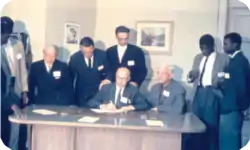 A finales del año 1975, algunas conferencias nacionales de algunos países firmaron la propuesta y así se fundó la Federación Mundial Bautista del Séptimo Día. Los miembros fundadores fueron conferencias de Alemania, Birmania (actual Myanmar ), Brasil, Estados Unidos, Guyana, Jamaica, Malawi, México, Nueva Zelanda, los Países Bajos y el Reino Unido. Pronto estuvo preparado una votación y se eligieron los primeros oficiales: Loren G. Osborn (Estados Unidos) como presidente; Otrain B. Manani (Malawi) y Joseph A. Samuels (Jamaica) como vicepresidentes; y Alton L. Wheeler (Estados Unidos) como secretario general.[5]