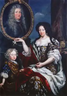 El príncipe heredero de siete años Carlos Guillermo de Baden-Durlach junto con su madre Augusta Maria de Schleswig-Holstein-Gottorf y su padre Federico Magno de Baden-Durlach.