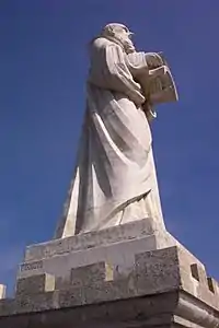 No sería hasta el 21 de junio de 1964 cuando, faltando cuatro días para el 330 aniversario de la proclamación como patrono de Haro, se continuase y terminase la obra, con ayuda de muchos jarreros que colaboraron para subir las diferentes partes hasta el alto.[10] Muestra a San Felices con un libro abierto entre sus manos.
