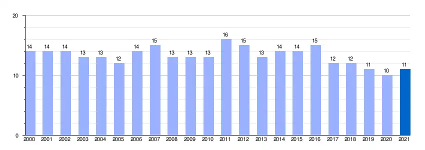 Gráfica de evolución demográfica de Felmín[4] entre 2000 y 2021 |