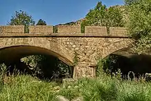 Tiene un puente de piedra sobre el cauce del río Torio con dos ojos construido en el siglo XIX aunque ensanchado por la parte aguas abajo en el siglo XX.