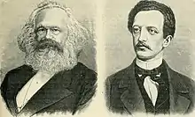 También en cuestiones teóricas y políticas, sus opiniones divergieron. De hecho, el ensayo de Marx Crítica del programa de Gotha está escrito en parte como una reacción a las ideas de Lassalle dentro del Partido Socialdemócrata de Alemania. Lassalle era un patriota alemán y apoyó a Prusia en su búsqueda de la unificación alemana. En febrero de 1864, Lassalle escribió a Engels que a pesar de ser republicano desde la infancia, "he llegado a la convicción de que nada podría tener un futuro mayor o un papel más benéfico que la monarquía, si tan sólo se decidiera a convertirse en monarquía social. En ese caso yo llevaría apasionadamente su estandarte, y las teorías constitucionales serían arrojadas al trastero con bastante rapidez".[12]