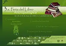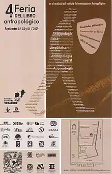 En el 2009, fue el primer año que se invitó a un estado, Veracruz (FLA IV) (Fecha 2 al 4 de septiembre) | ![]() Cartel promocional de la cuarta Feria del Libro Antropológico de 2009 |