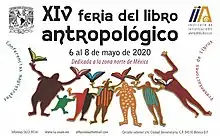Cabe destacar que en el 2020 ya se había avanzado en la organización de la XIV edición de la FLA en esa ocasión la Feria se dedicaría “A la zona norte de México”, al mismo tiempo se estaba trabajando en el programa académico y cultural que acompañaría a la Feria, sin embargo el encierro obligatorio a partir del 23 de marzo de dicho año por el tema de la pandemia por la Covid-19, impidió su realización, así ha sido hasta la fecha (Estaba programada del 6 al 8 de mayo) | ![]() Cartel promocional de la octava Feria del Libro Antropológico de 2020 |