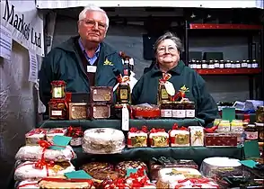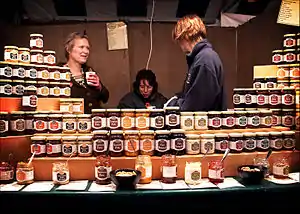 Un «puesto» o «tenderete» de salsas en una feria gastronómica de Londres.