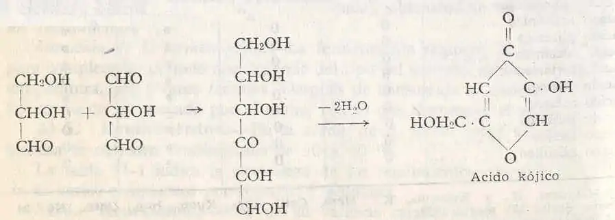 Challenger y colaboradores suponían así que la dihidroxiacetona o el aldehído glicérico eran los productos intermedios lógicos en la formación de ácido kójico.